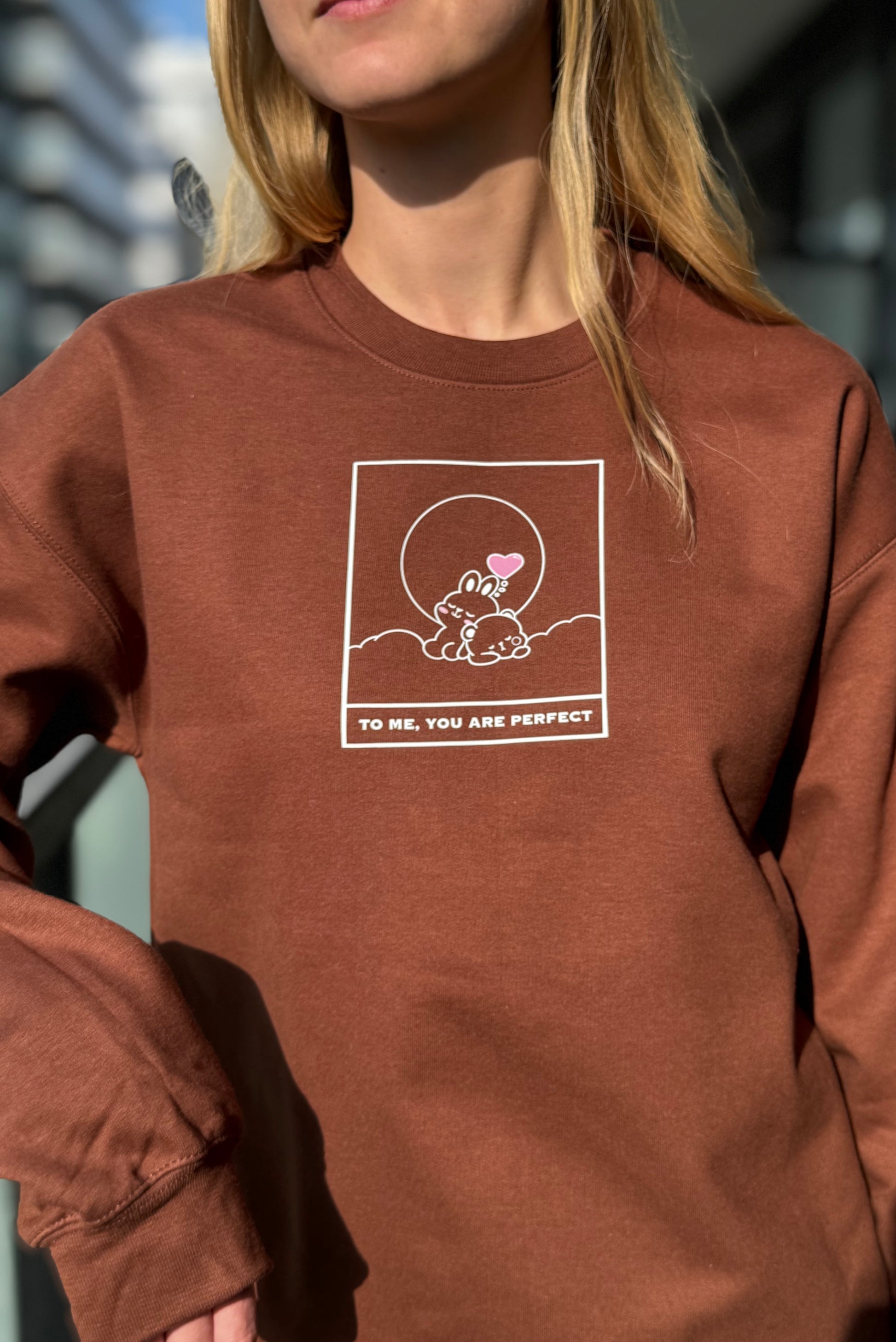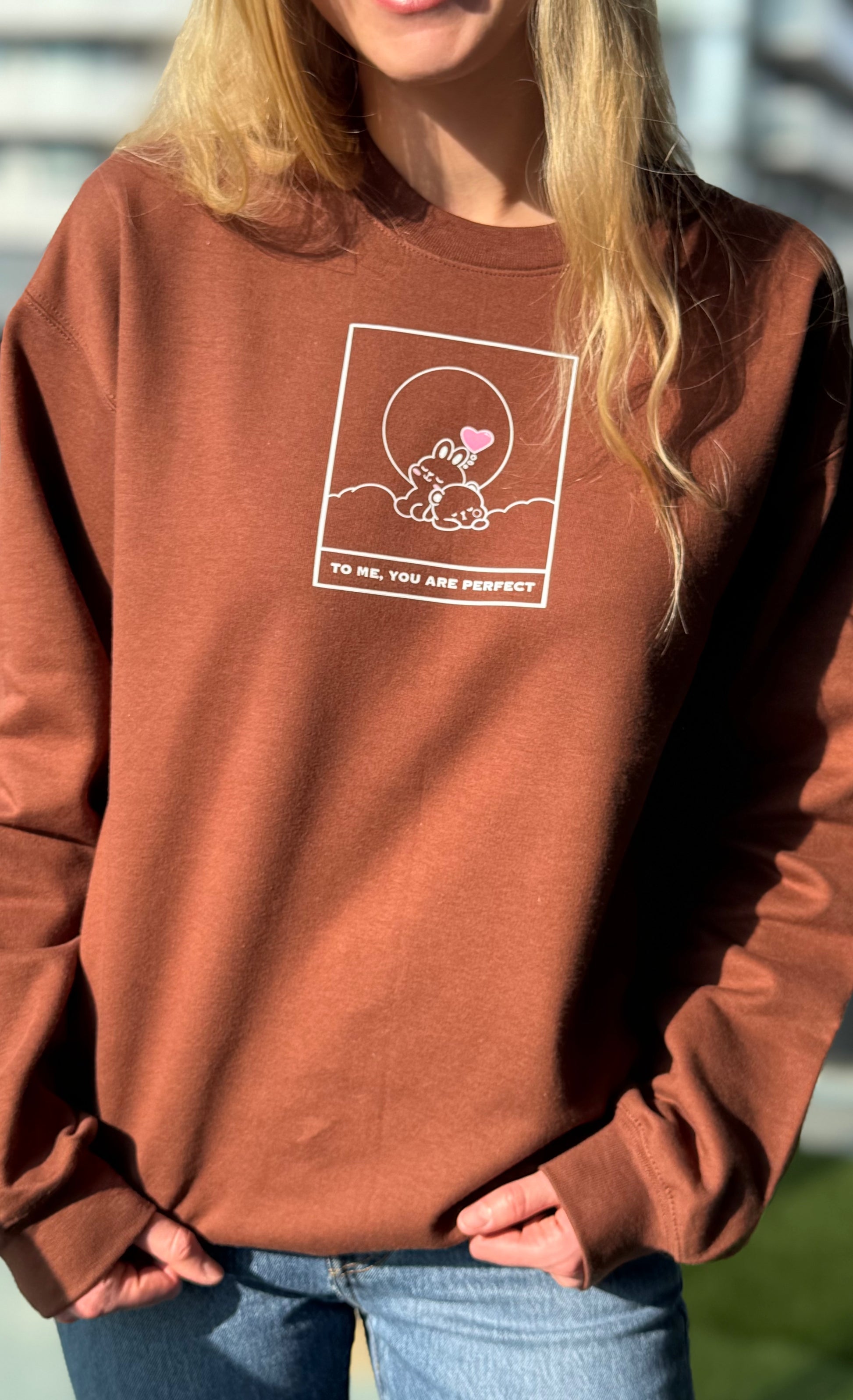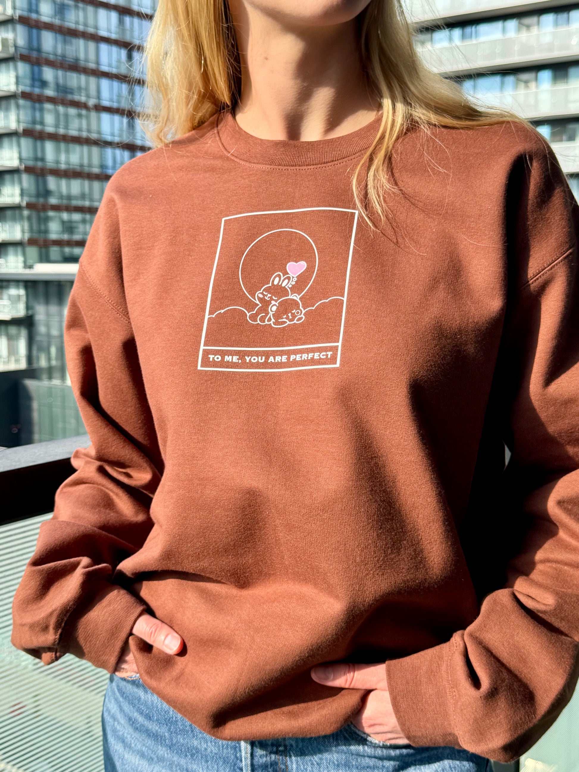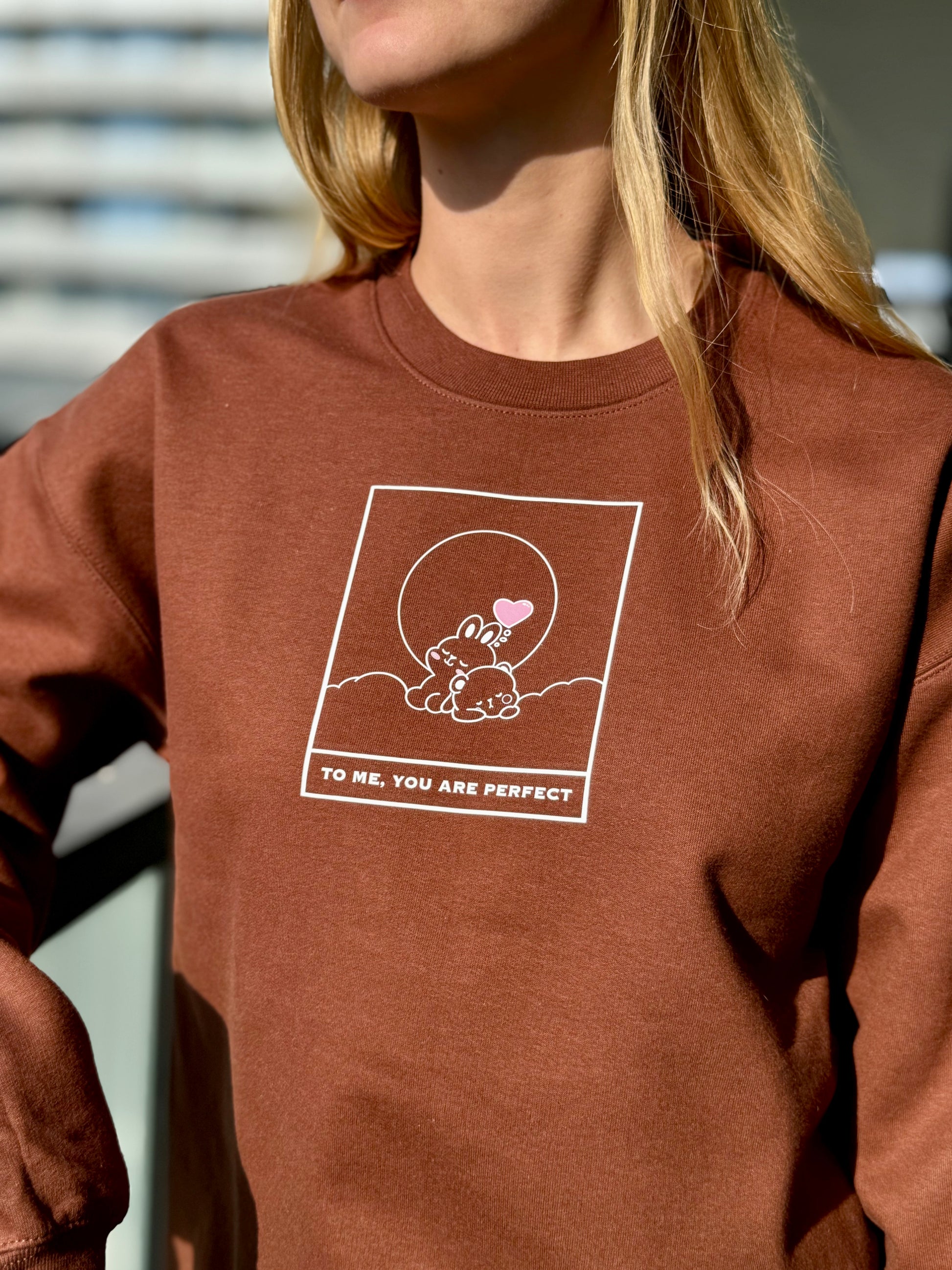 Get ready to Koze up in this incredibly soft cocoa sweatshirt! Emblazoned with the sweet message "To Me You Are Perfect," it’s more than just clothing—it's a warm, comforting hug you can wear. It’s ideal for those relaxed moments when you want to feel cherished or to share a little love with someone special.